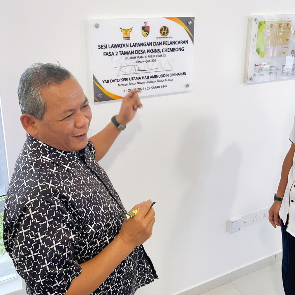 On 21 August 2025, Taman Desa PKNNS, Chembong received a working visit and was officiated by YAB Dato’ Seri Utama Haji Aminuddin bin Harun, the Menteri Besar of Negeri Sembilan and accompanied by YB Tuan Arul Kumar A/L Jambunathan, Chairman of the Local Government Development, Housing and Transportation Action Committee and YB Dato’ Hj Zaiful Bahri bin Hj Idris as the Member of the Chembong State Assembly, YBrs. Puan Rusmimah binti Mat Derus as the Chief Executive of the Perbadanan Kemajuan Negeri, Negeri Sembilan (PKNNS).